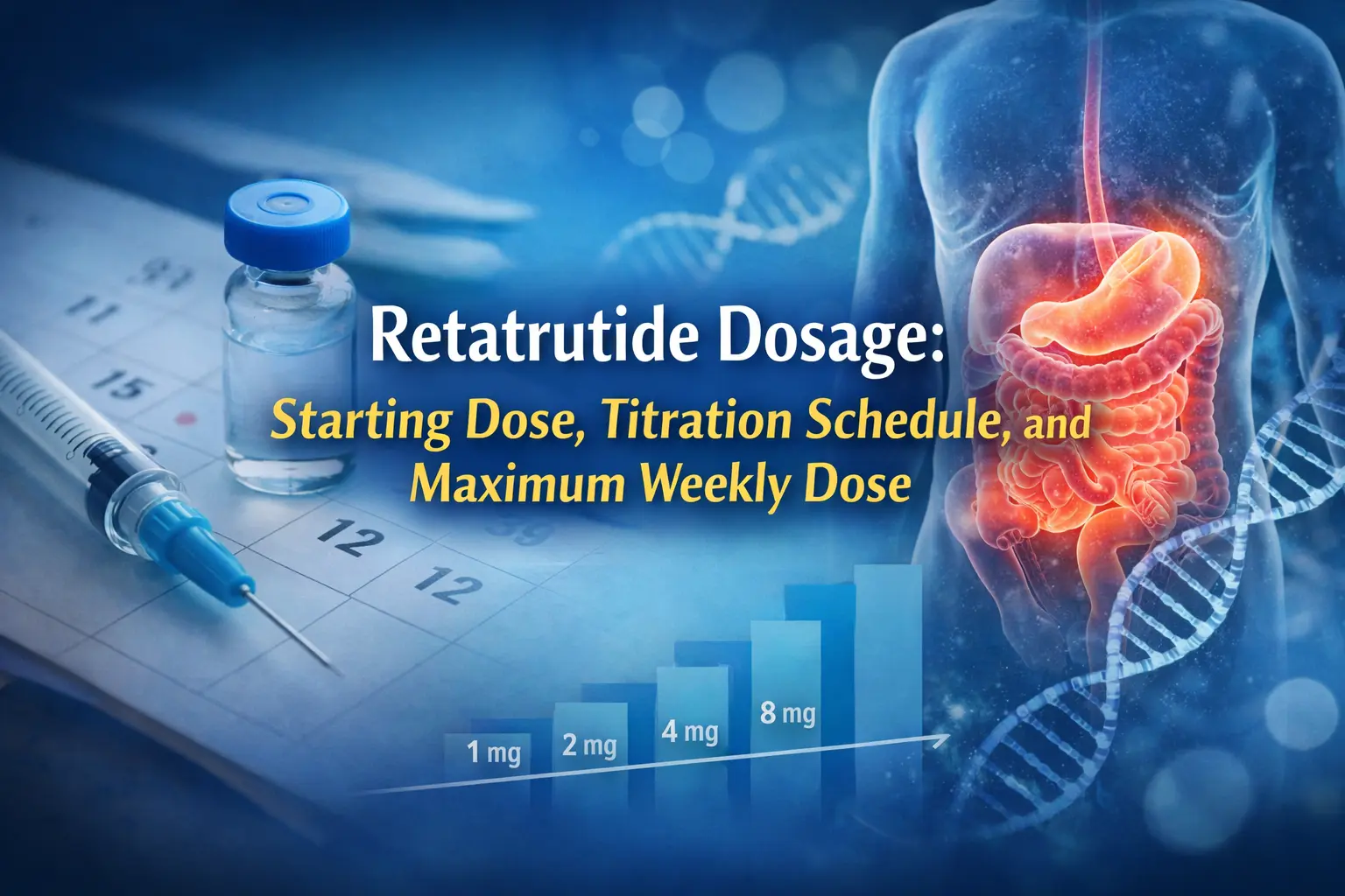 Typical retatrutide dosage begins at 1 mg once weekly, with gradual increases approximately every 4 weeks.